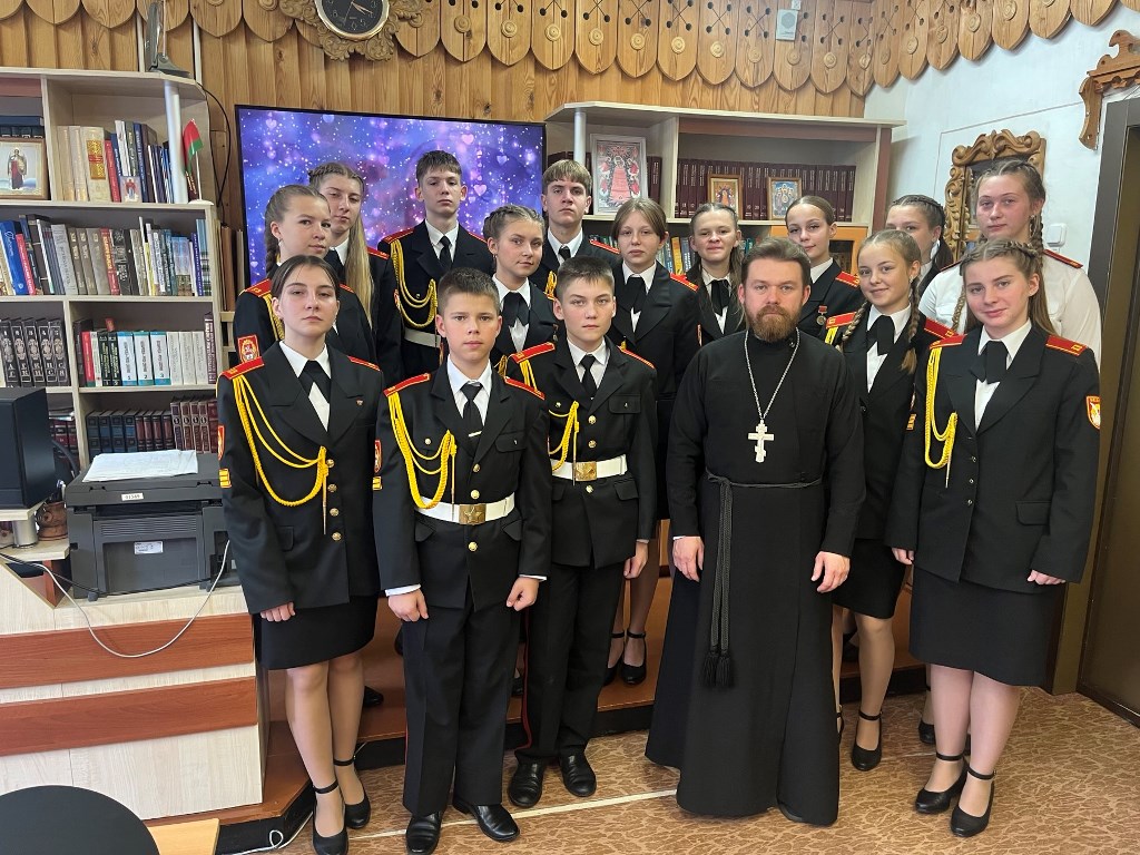 . Гостем мероприятия был настоятель храма Вознесения Господня деревни Лужесно, благочинный Витебского районного благочиния, проректор по воспитательной работе Витебской духовной семинарии иерей Дионисий Андреев, который очень интересно, искренне побеседовал с кадетами, рассказал об истории праздника Покрова Пресвятой Богородицы, роли матери и отца в жизни каждого человека.
