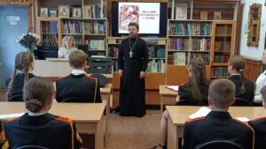 . Гостем мероприятия был настоятель храма Вознесения Господня деревни Лужесно, благочинный Витебского районного благочиния, проректор по воспитательной работе Витебской духовной семинарии иерей Дионисий Андреев, который очень интересно, искренне побеседовал с кадетами, рассказал об истории праздника Покрова Пресвятой Богородицы, роли матери и отца в жизни каждого человека.