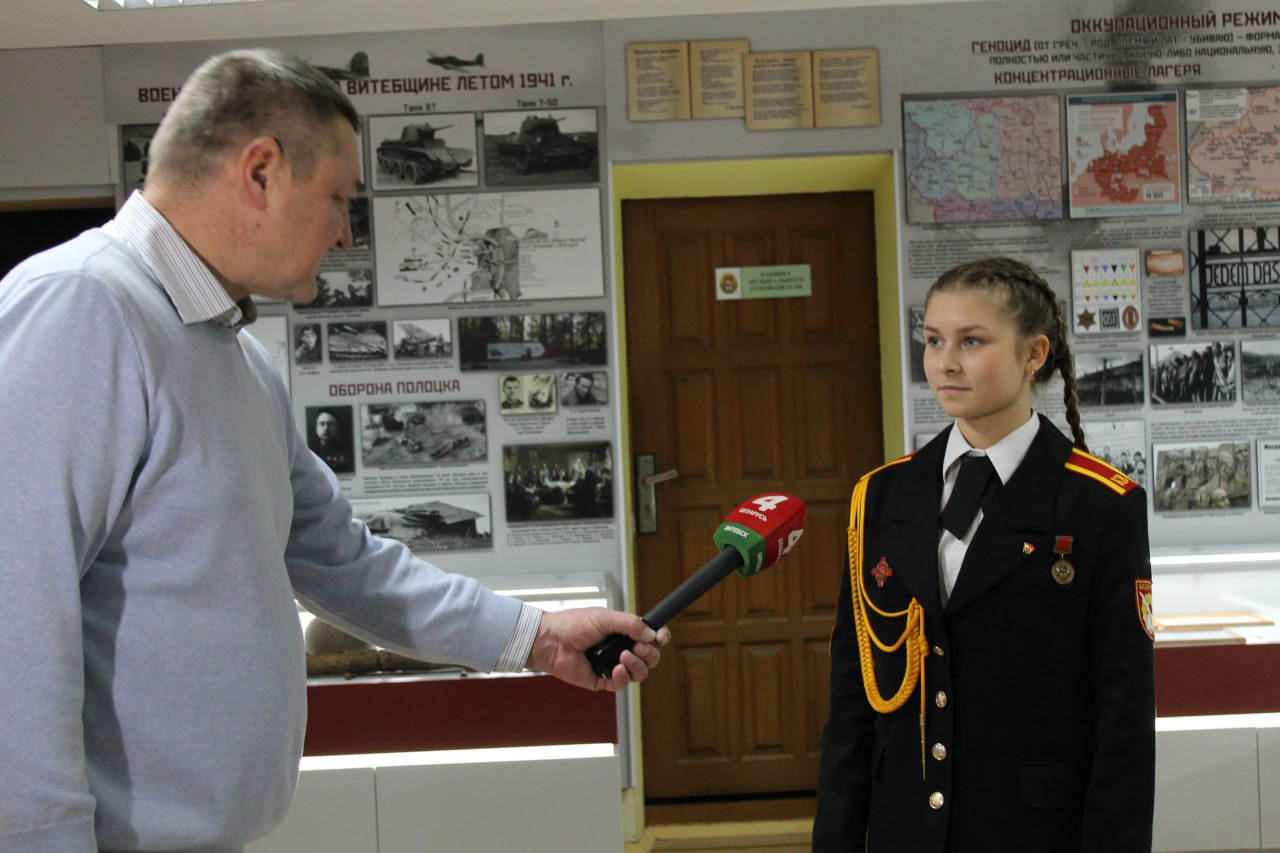 Встреча началась с экскурсии по училищу, также гости посетили стационарную музейную экспозицию «Великая Отечественная война 1941-1945 гг. в истории Беларуси и моего края».