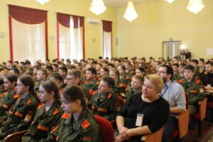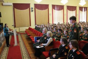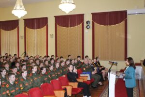 В актовом зале училища заместитель Председателя Государственного комитета по науке и технологиям Cтолярова Татьяна Григорьевна пообщалась с кадетами. Значимые совместные проекты Беларуси и России в научно-технической сфере, женщина-политик в современном мире, школа будущего – эти и другие темы были интересны учащимся.