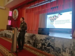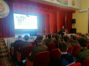 В рамках месячника военно-патриотической работы «Служу Отечеству!» в Витебском кадетском училище прошла встреча с подполковником Потаповым Вячеславом Александровичем, доцентом, ведущим научным сотрудником научно-исследовательской лаборатории военного факультета Белорусской государственной академии авиации.