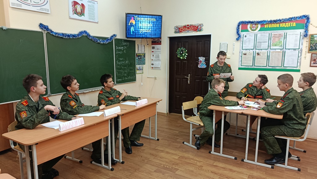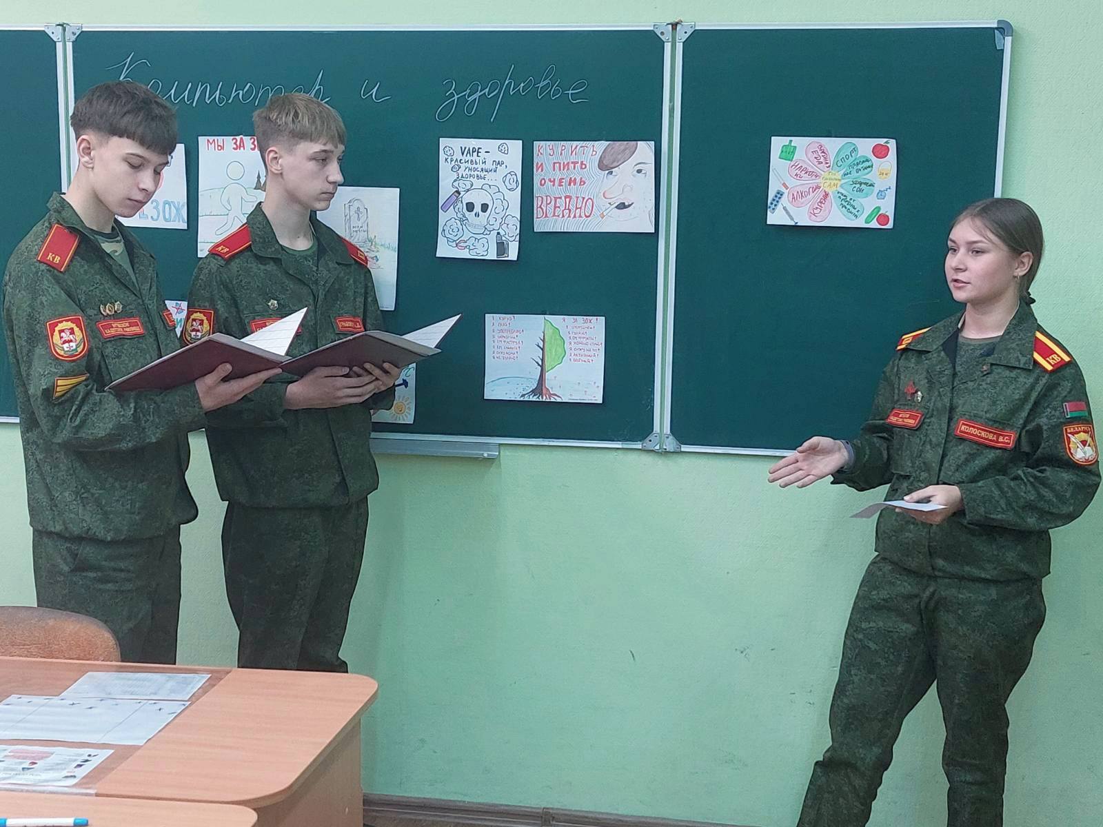 Участковый инспектор ИДН ОВД Витебского района Игорь Кавунов 12.11.2025 встретился с кадетами и выступил на тему: «Правонарушения подростков как результат вредных привычек».