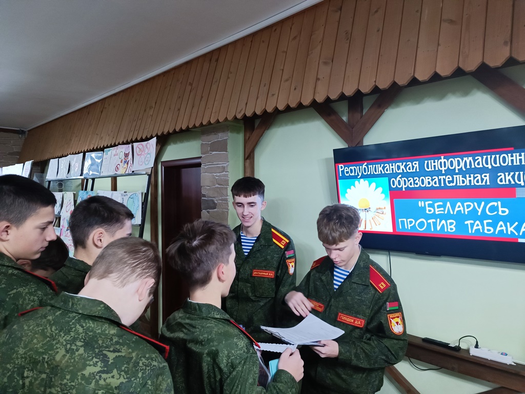 21.11.2025 актив первичной организации кадетского училища ОО «БРСМ» провёл акцию под девизом «Беларусь против никотина». Цель акции – обратить внимание обучающихся на негативные последствия потребления табака. В ходе мероприятия участникам предлагалось ответить на вопросы, связанные с темой курения и табака.